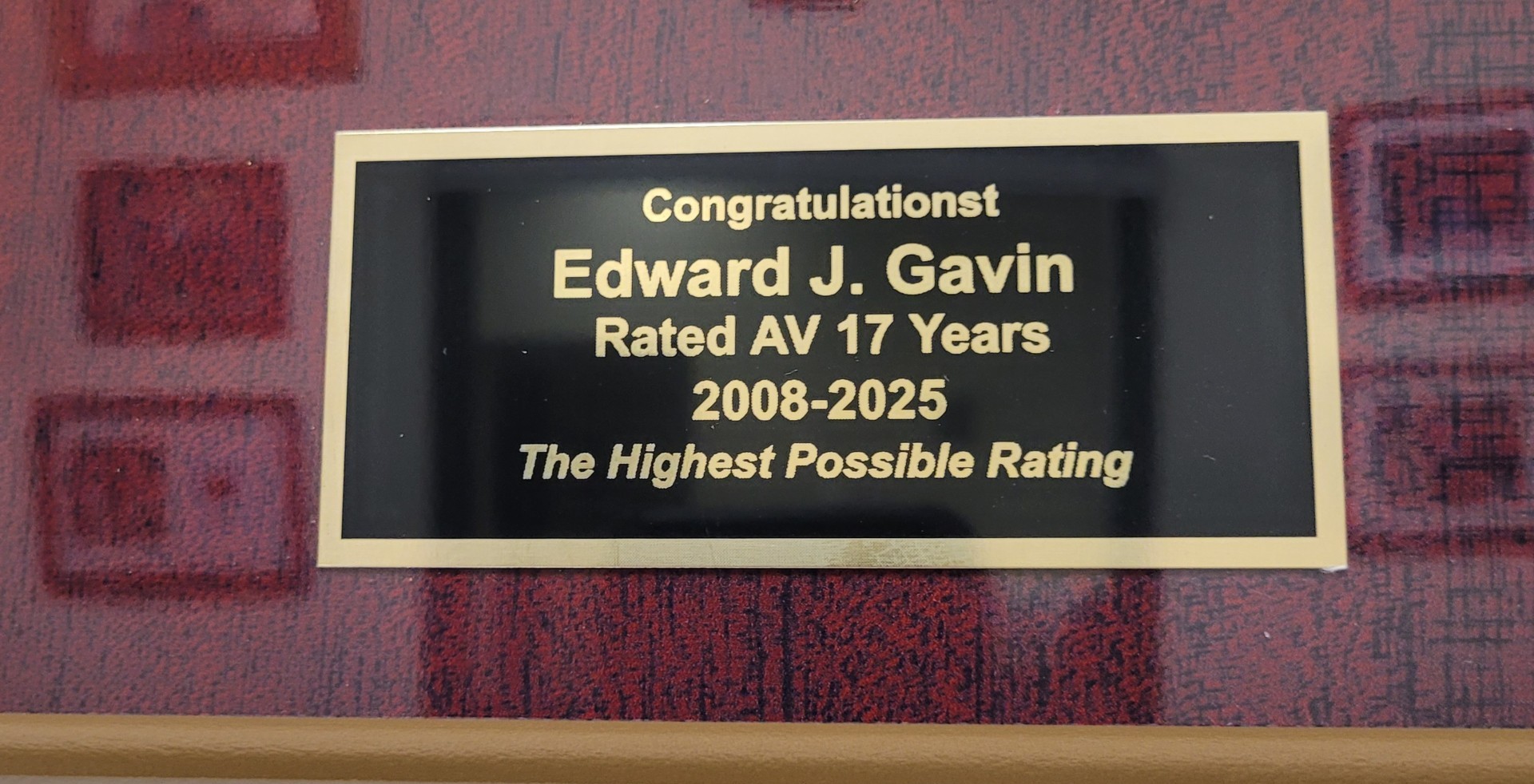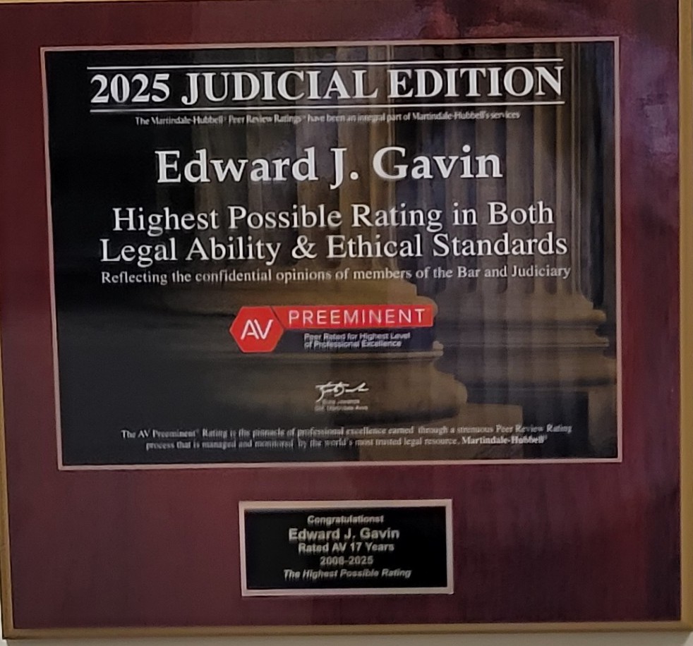 Martindale-Hubbell®. has announced that Attorney Edward J. Gavin has Achieved the AV Preeminent® Rating – the Highest Possible Rating from Martindale-Hubbell® for the 15th Consecutive year.